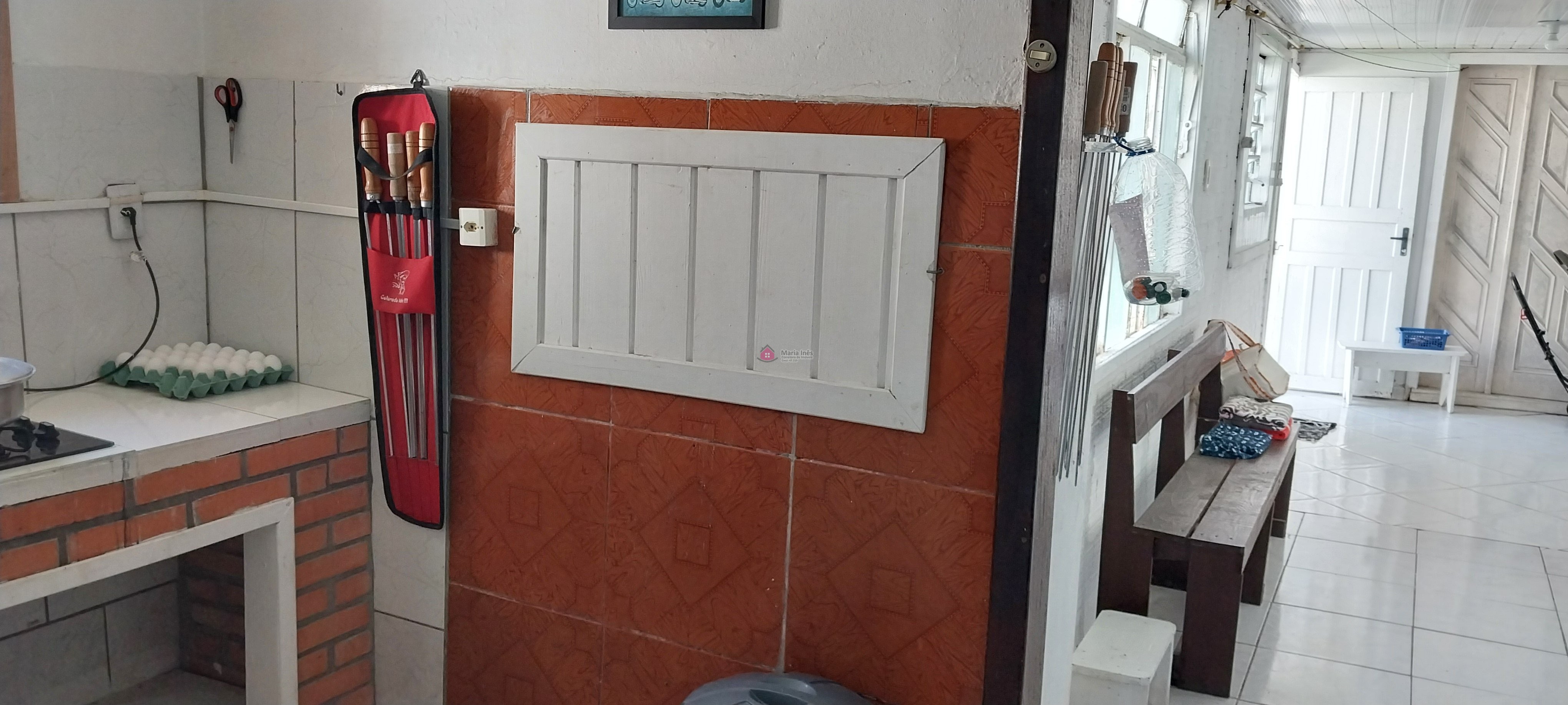 Churrasqueira e lavanderia com quintal gramado, formando uma grande área livre para recreação e/ou para instalar piscina com quiosque.