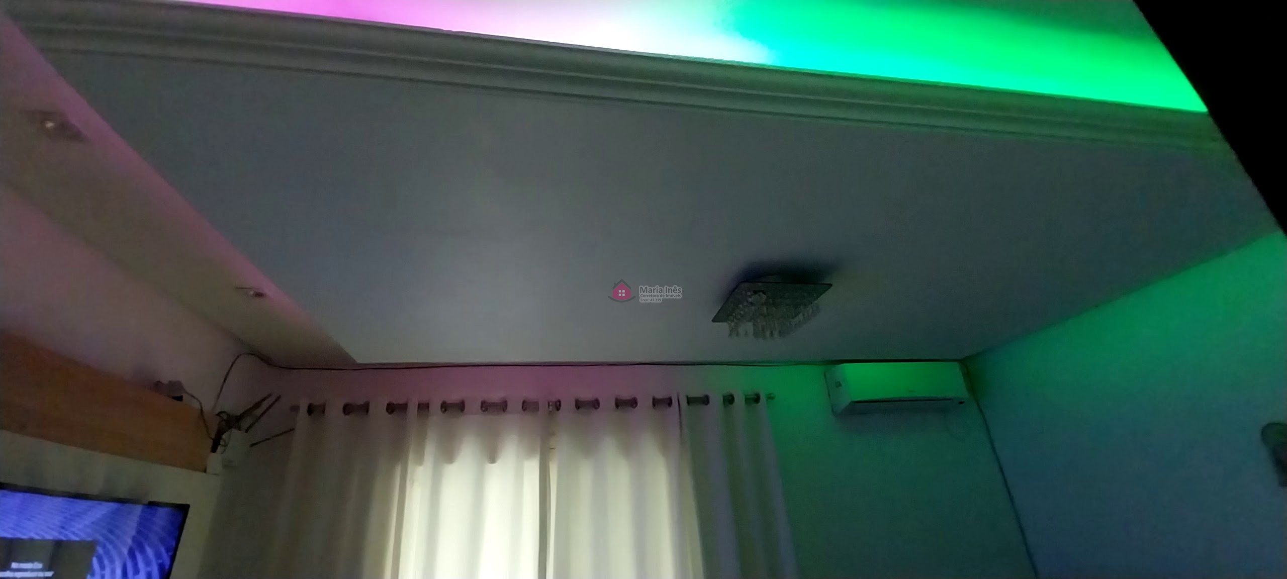 Com dois dormitórios, sendo uma suíte e mais um banheiro social no andar superior. Suíte com sacada frontal, com iluminação embutida e colorida.
