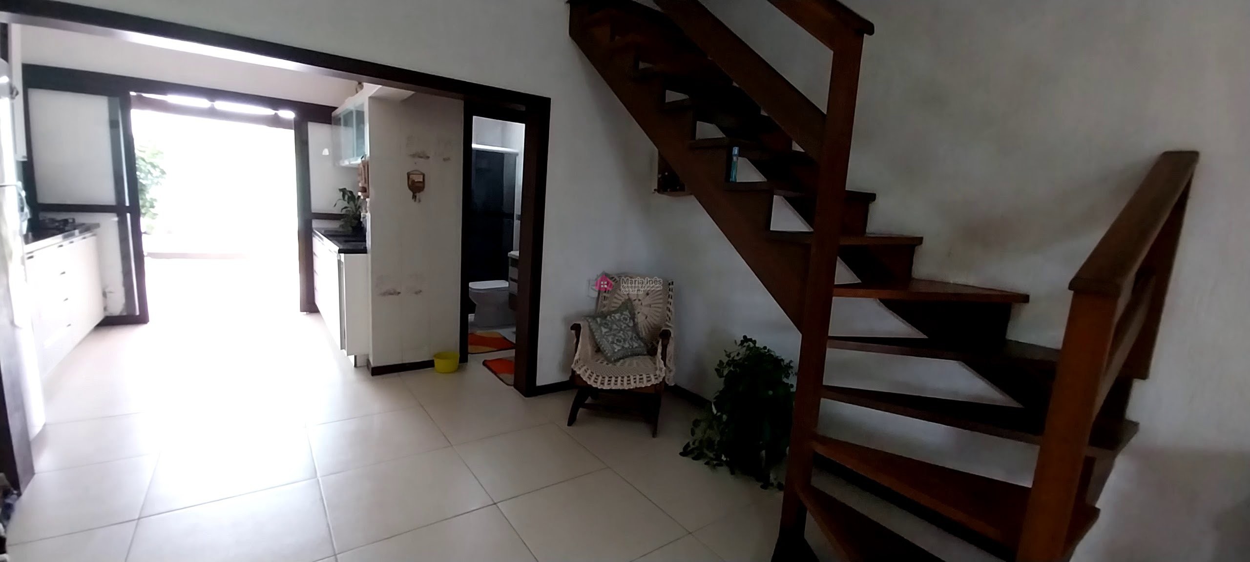 No andar inferior, amplo liwing com lavabo, cozinha e varanda.Aos fundos,piscina com quiosque,jardim e pátio gramado.Muros altos fazem a proteção da lateral e fundos do terreno.