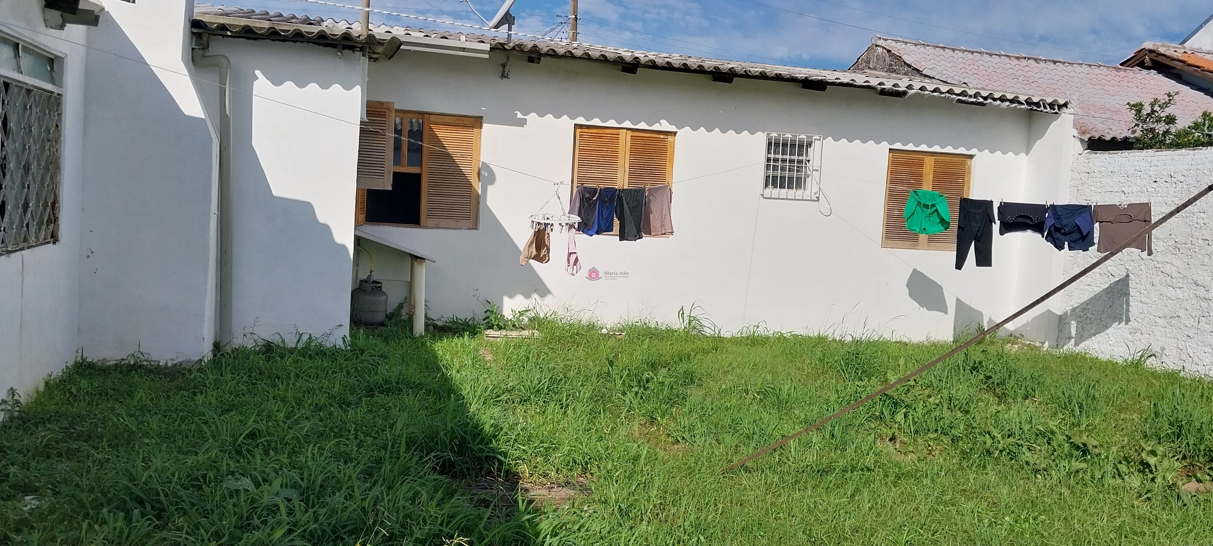 Churrasqueira e lavanderia com quintal gramado, formando uma grande área livre para recreação e/ou para instalar piscina com quiosque.