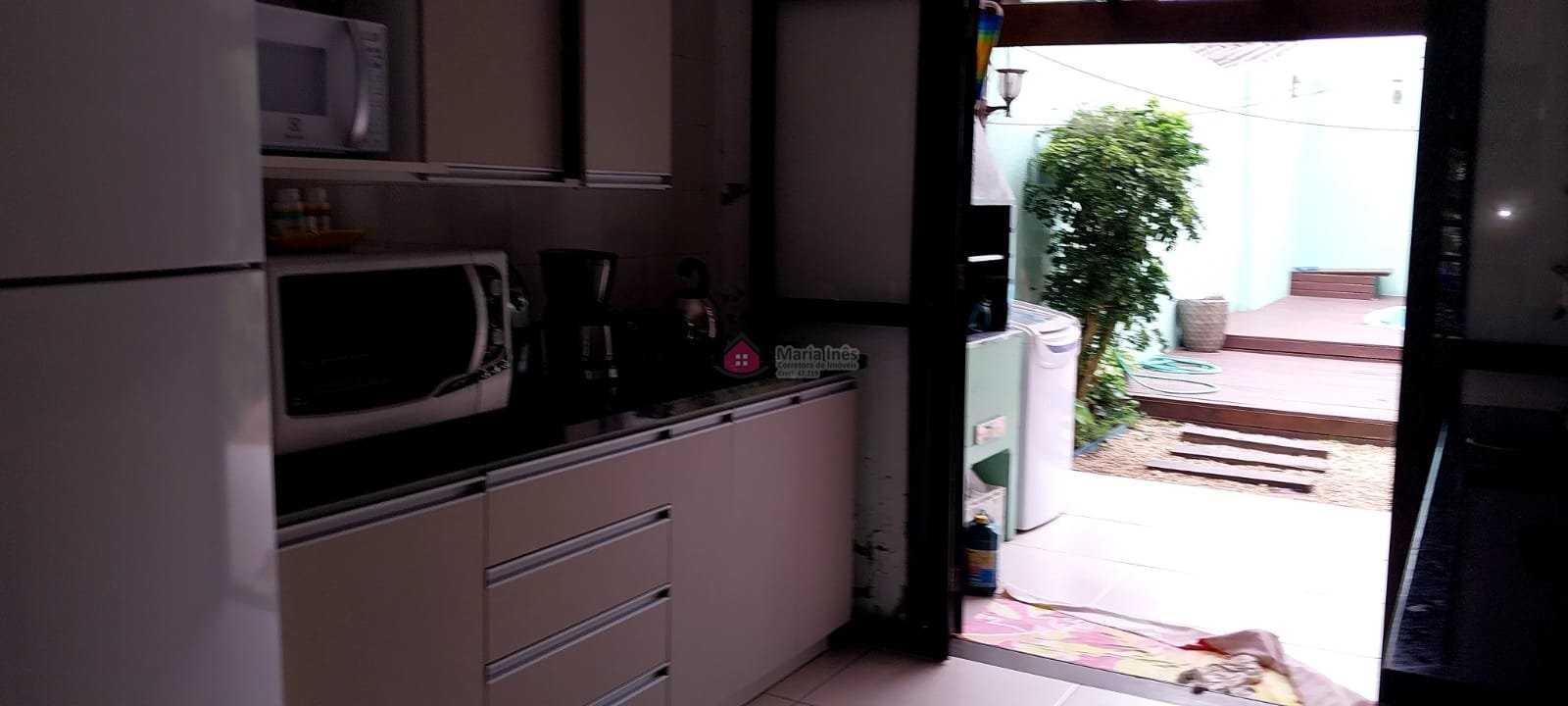 No andar inferior, amplo liwing com lavabo, cozinha e varanda.Aos fundos,piscina com quiosque,jardim e pátio gramado.Muros altos fazem a proteção da lateral e fundos do terreno.